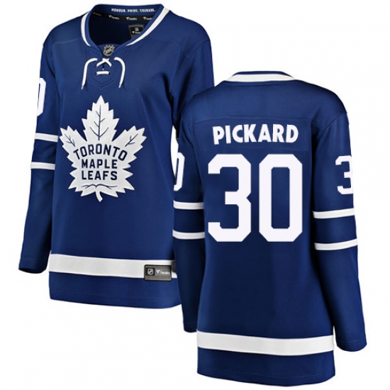 >Women's Toronto Maple Leafs #30 Calvin Pickard Authentic Royal Blue Home Fanatics Branded Breakaway NHL Jersey