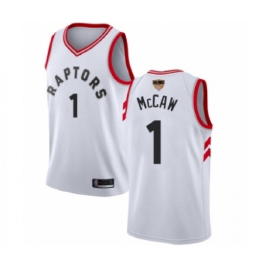 >Women's Toronto Raptors #1 Tracy Mcgrady Swingman White 2019 Basketball Finals Bound Jersey - Association Edition