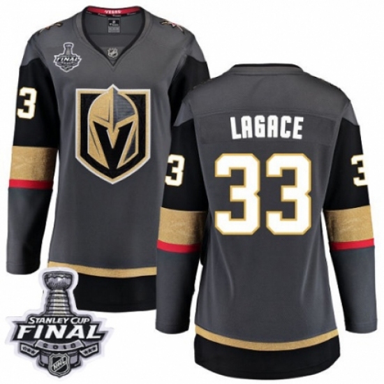 >Women's Vegas Golden Knights #33 Maxime Lagace Authentic Black Home Fanatics Branded Breakaway 2018 Stanley Cup Final NHL Jersey
