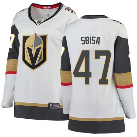 >Women's Vegas Golden Knights #47 Luca Sbisa Authentic White Away Fanatics Branded Breakaway NHL Jersey