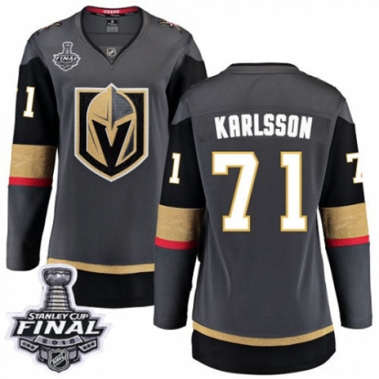 >Women's Vegas Golden Knights #71 William Karlsson Authentic Black Home Fanatics Branded Breakaway 2018 Stanley Cup Final NHL Jersey