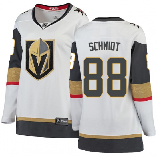 >Women's Vegas Golden Knights #88 Nate Schmidt Authentic White Away Fanatics Branded Breakaway NHL Jersey