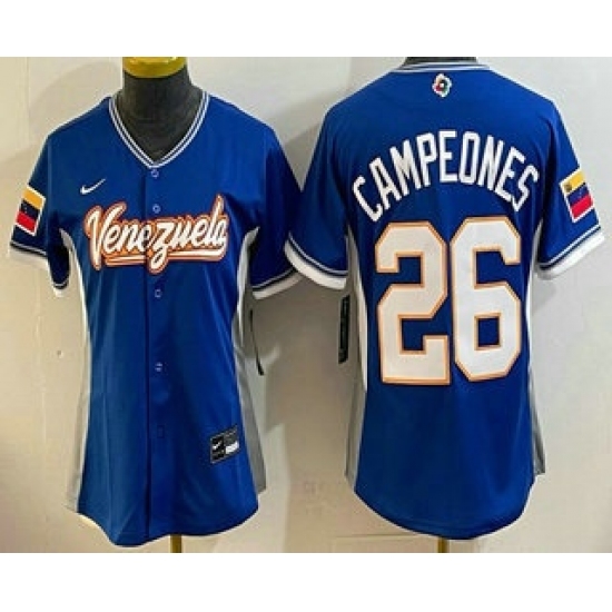 >Women's Venezuela #26 Campeones Blue 2026 World Baseball Classic Cool Base Jersey