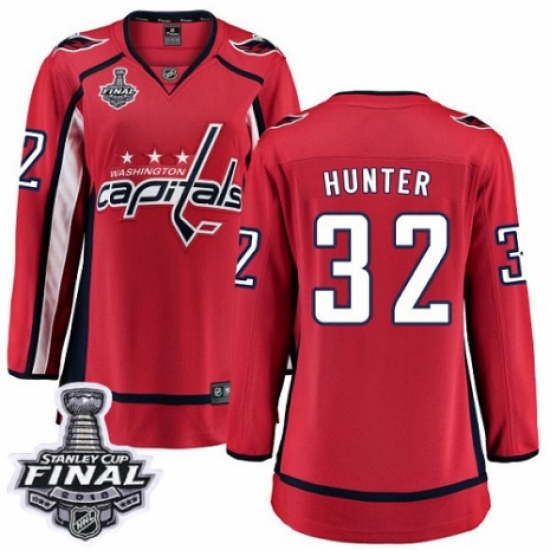 >Women's Washington Capitals #32 Dale Hunter Fanatics Branded Red Home Breakaway 2018 Stanley Cup Final NHL Jersey