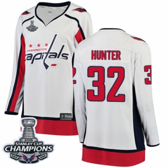 Women's Washington Capitals #32 Dale Hunter Fanatics Branded White Away Breakaway 2018 Stanley Cup Final Champions NHL Jersey