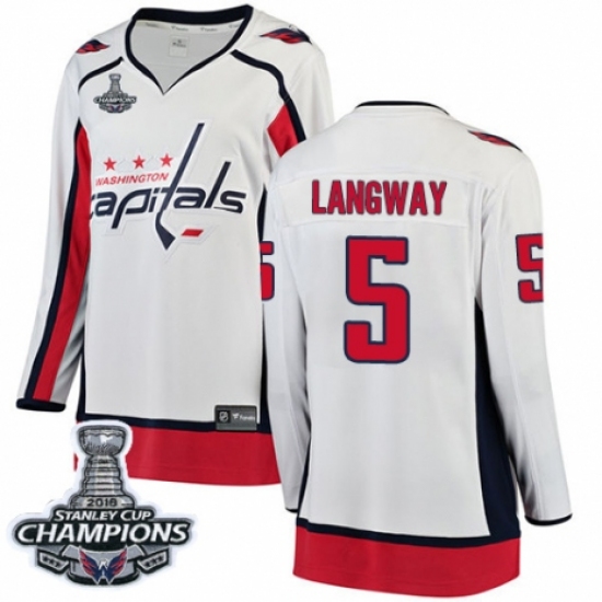 Women's Washington Capitals #5 Rod Langway Fanatics Branded White Away Breakaway 2018 Stanley Cup Final Champions NHL Jersey
