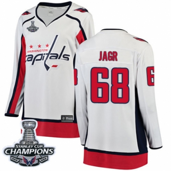 Women's Washington Capitals #68 Jaromir Jagr Fanatics Branded White Away Breakaway 2018 Stanley Cup Final Champions NHL Jersey