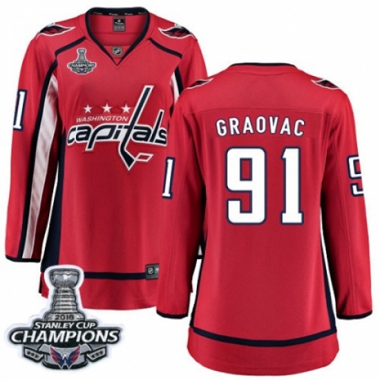Women's Washington Capitals #91 Tyler Graovac Fanatics Branded Red Home Breakaway 2018 Stanley Cup Final Champions NHL Jersey
