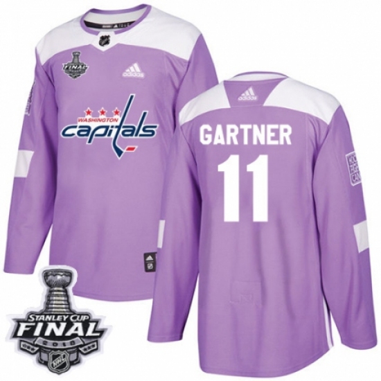 >Youth Adidas Washington Capitals #11 Mike Gartner Authentic Purple Fights Cancer Practice 2018 Stanley Cup Final NHL Jersey