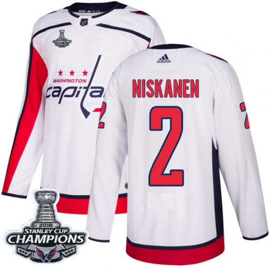 Youth Adidas Washington Capitals #2 Matt Niskanen Authentic White Away 2018 Stanley Cup Final Champions NHL Jersey