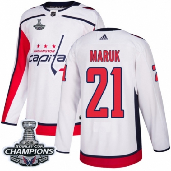 >Youth Adidas Washington Capitals #21 Dennis Maruk Authentic White Away 2018 Stanley Cup Final Champions NHL Jersey