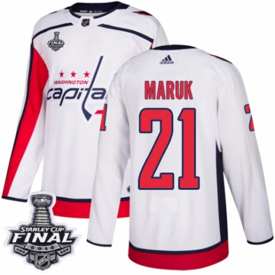 Youth Adidas Washington Capitals #21 Dennis Maruk Authentic White Away 2018 Stanley Cup Final NHL Jersey