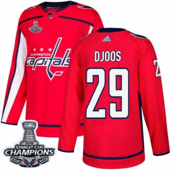 Women's Adidas Washington Capitals #29 Christian Djoos Authentic Red Home 2018 Stanley Cup Final NHL Jersey
