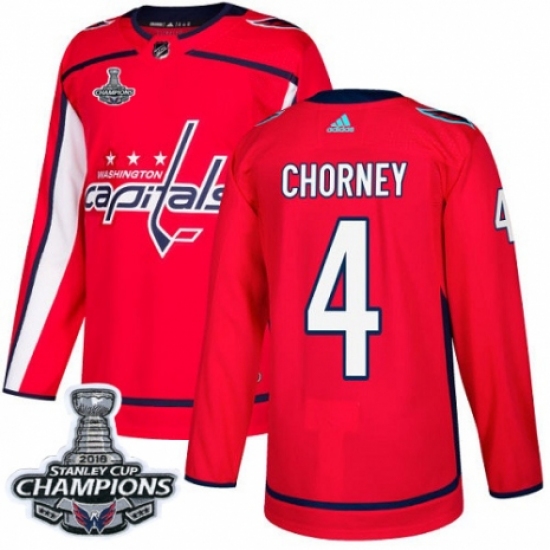 Women's Adidas Washington Capitals #4 Taylor Chorney Authentic Red Home 2018 Stanley Cup Final Champions NHL Jersey