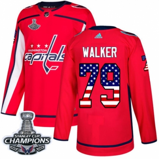 Women's Adidas Washington Capitals #79 Nathan Walker Authentic Red USA Flag Fashion 2018 Stanley Cup Final Champions NHL Jersey