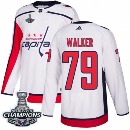 Youth Adidas Washington Capitals #79 Nathan Walker Authentic White Away 2018 Stanley Cup Final Champions NHL Jersey