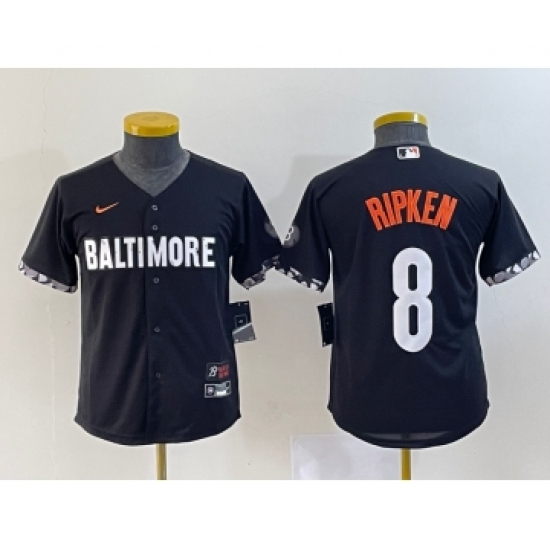Youth Baltimore Orioles #8 Cal Ripken Jr Black 2023 City Connect Cool Base Stitched Jersey 1