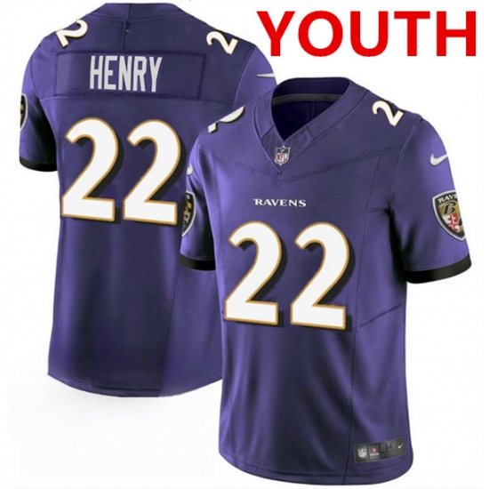 Youth Baltimore Ravens #22 Derrick Henry Purple 2023 F.U.S.E. Football Stitched Jersey
