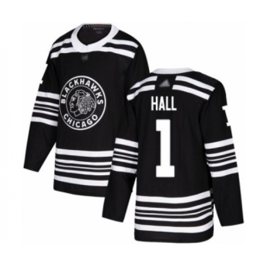 >Youth Chicago Blackhawks #1 Glenn Hall Authentic Black Alternate Hockey Jersey