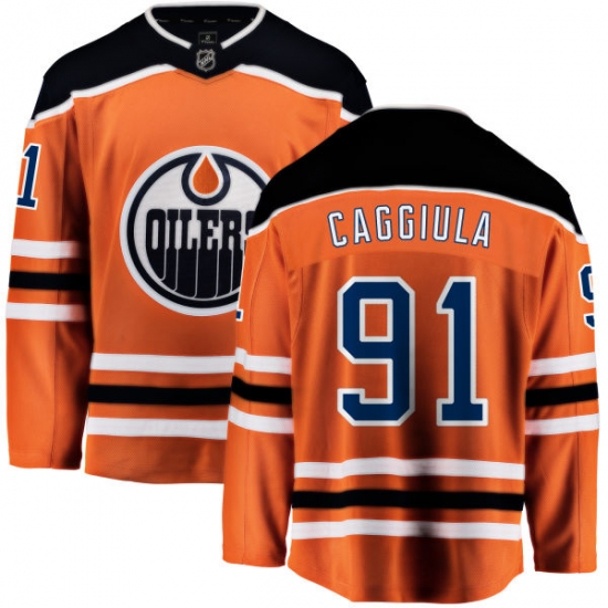 Home>NHL>Edmonton Oilers>Drake Caggiula>Youth Edmonton Oilers #91 Drake Caggiula Fanatics Branded Orange Home Breakaway NHL Jersey