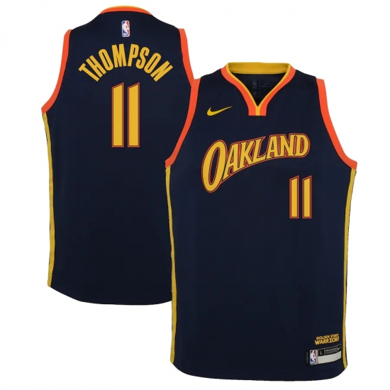 >Youth Golden State Warriors #11 Klay Thompson Nike Navy 2020-21 Swingman Jersey