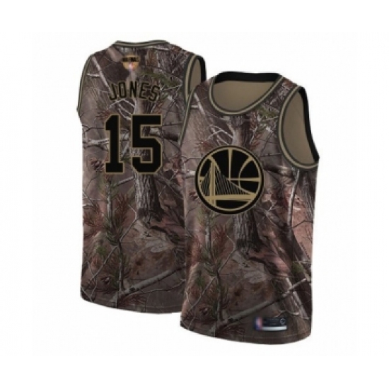>Youth Golden State Warriors #15 Damian Jones Swingman Camo Realtree Collection Basketball 2019 Basketball Finals Bound Jersey