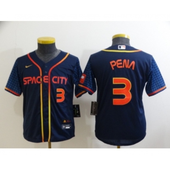 Youth Houston Astros #3 Jeremy Pena Number 2022 Navy Blue City Connect Cool Base Stitched Jersey