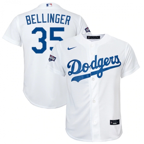 >Youth Los Angeles Dodgers #35 Cody Bellinger Nike White 2020 World Series Champions Home Replica Player Jersey