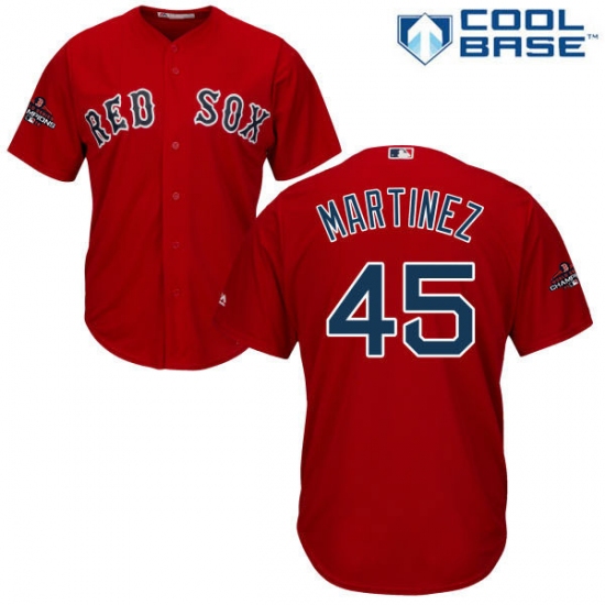 >Youth Majestic Boston Red Sox #45 Pedro Martinez Authentic Red Alternate Home Cool Base 2018 World Series Champions MLB Jersey