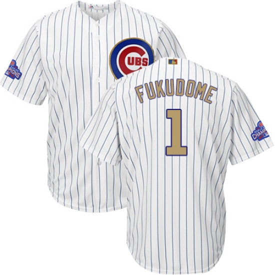 Home>MLB>Chicago Cubs>Kosuke Fukudome>Youth Majestic Chicago Cubs #1 Kosuke Fukudome Authentic White 2017 Gold Program Cool Base MLB Jersey