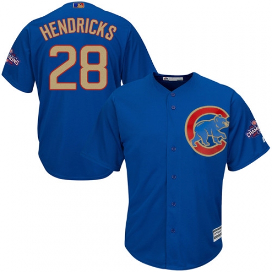 Home>MLB>Chicago Cubs>Kyle Hendricks>Youth Majestic Chicago Cubs #28 Kyle Hendricks Authentic Royal Blue 2017 Gold Champion Cool Base MLB Jersey