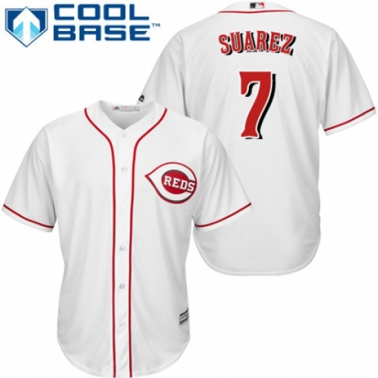 >Youth Majestic Cincinnati Reds #7 Eugenio Suarez Replica White Home Cool Base MLB Jersey