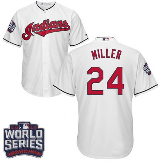 Youth Majestic Cleveland Indians #24 Andrew Miller Authentic White Home 2016 World Series Bound Cool Base MLB Jersey