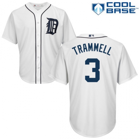 Home>MLB>Detroit Tigers>Alan Trammell>Youth Majestic Detroit Tigers #3 Alan Trammell Authentic White Home Cool Base MLB Jersey