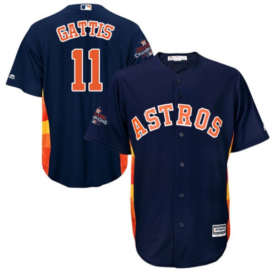 Home>MLB>Houston Astros>Evan Gattis>Youth Majestic Houston Astros #11 Evan Gattis Replica Navy Blue Alternate 2017 World Series Champions Cool Base MLB Jersey