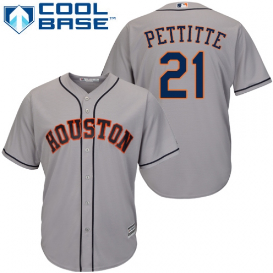 Home>MLB>Houston Astros>Andy Pettitte>Youth Majestic Houston Astros #21 Andy Pettitte Authentic Grey Road Cool Base MLB Jersey
