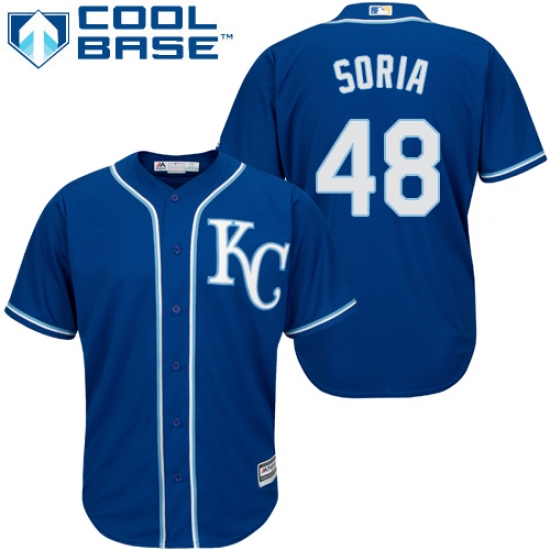 Home>MLB>Kansas City Royals>Joakim Soria>Youth Majestic Kansas City Royals #48 Joakim Soria Authentic Blue Alternate 2 Cool Base MLB Jersey