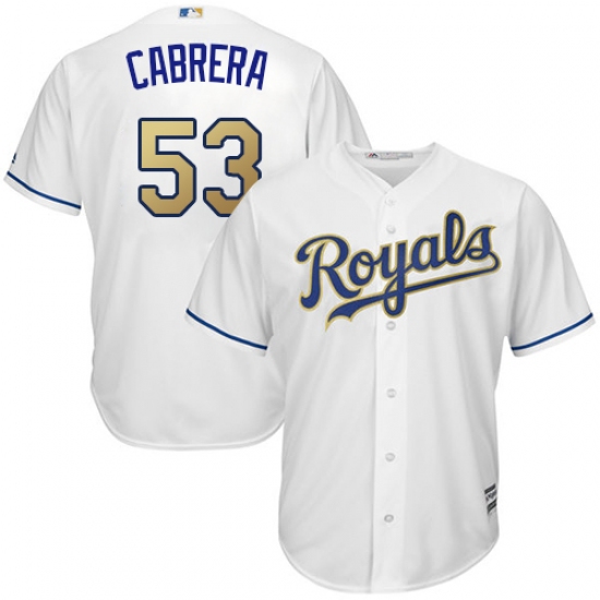 Home>MLB>Kansas City Royals>Melky Cabrera>Youth Majestic Kansas City Royals #53 Melky Cabrera Replica White Home Cool Base MLB Jersey