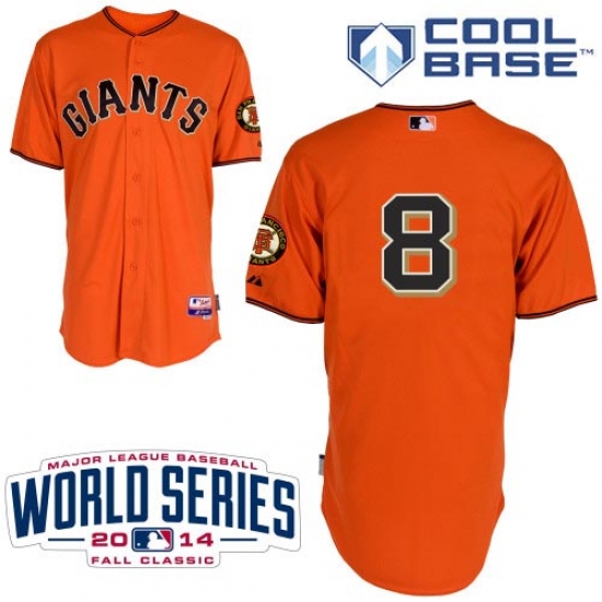 Home>MLB>San Francisco Giants>Hunter Pence>Youth Majestic San Francisco Giants #8 Hunter Pence Authentic Orange Alternate Cool Base 2014 World Series Patch MLB Jersey