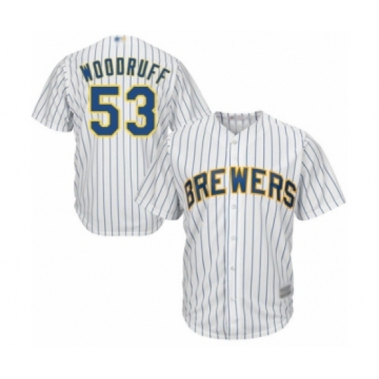 Youth Milwaukee Brewers #53 Brandon Woodruff Authentic White Home Cool Base Baseball Jersey