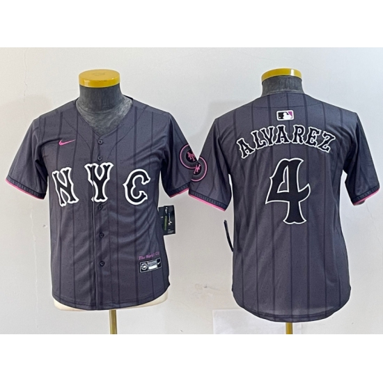 >Youth New York Mets #4 Francisco Alvarez Gray 2024 City Connect Cool Base Stitched Jersey