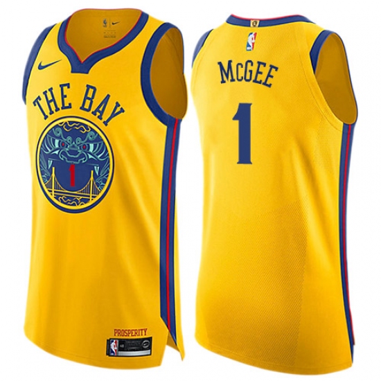Home>NBA>Golden State Warriors>JaVale McGee>Youth Nike Golden State Warriors #1 JaVale McGee Swingman Gold NBA Jersey - City Edition