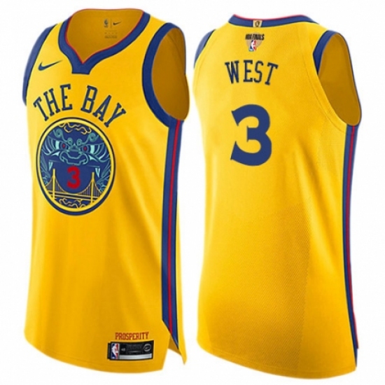 >Youth Nike Golden State Warriors #3 David West Swingman Gold 2018 NBA Finals Bound NBA Jersey - City Edition