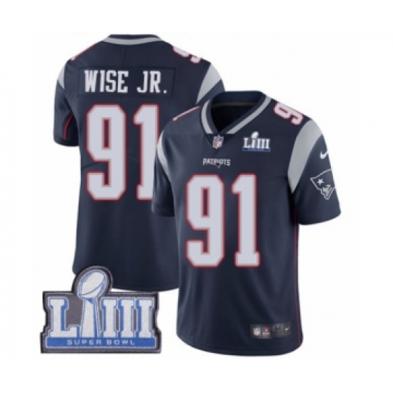 Men's Nike New England Patriots #91 Deatrich Wise Jr Navy Blue Team Color Vapor Untouchable Limited Player Super Bowl LIII Bound NFL Jersey