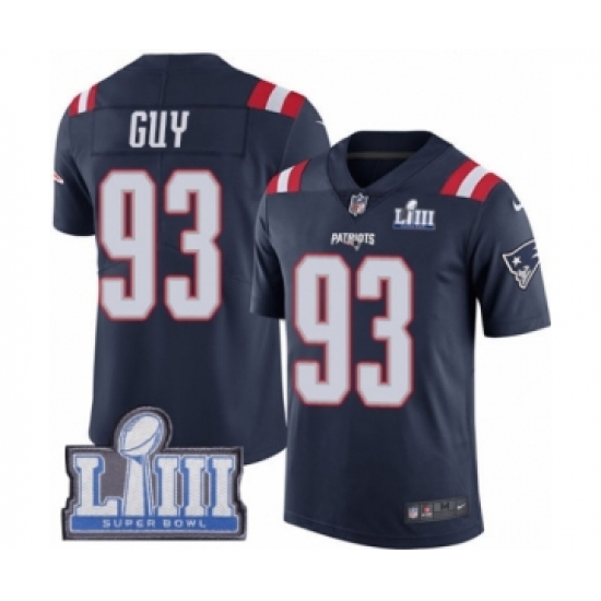 Youth Nike New England Patriots #93 Lawrence Guy Limited Navy Blue Rush Vapor Untouchable Super Bowl LIII Bound NFL Jersey