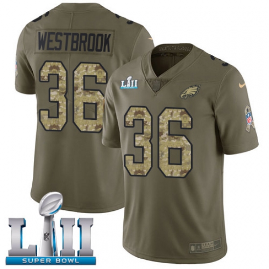 >Youth Nike Philadelphia Eagles #36 Brian Westbrook Limited Olive Camo 2017 Salute to Service Super Bowl LII NFL Jersey