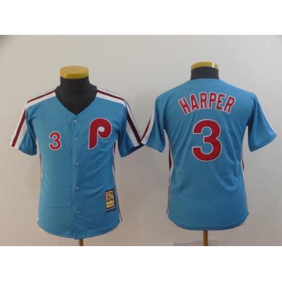>Youth Philadelphia Phillies #3 Bryce Harper Light Blue Alternate Jersey