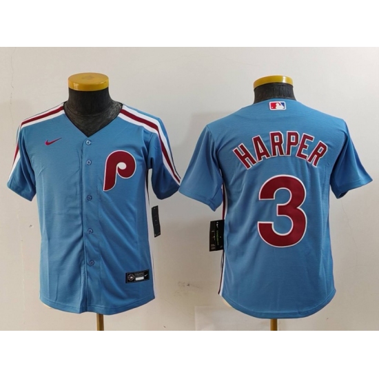 Youth Philadelphia Phillies #3 Bryce Harper Light Blue Cooperstown Cool Base Jersey