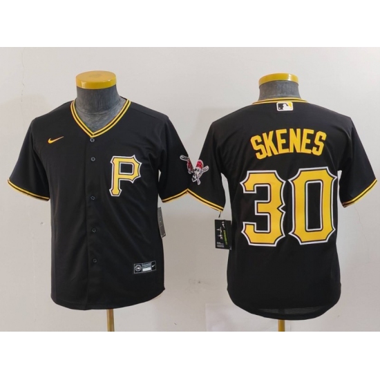 >Youth Pittsburgh Pirates #30 Paul Skenes Black Stitched Cool Base Nike Jersey