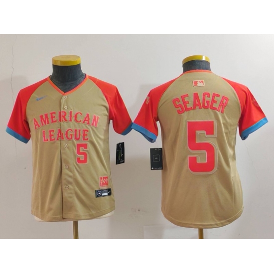 >Youth Texas Rangers #5 Corey Seager Number Cream 2024 All Star Limited Stitched Jersey